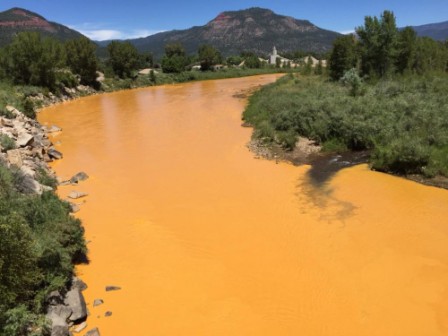 The normally clear waters turned a mustardy-orange color and discolored waters stretched for more than 100 miles, all the way into the neighboring state of New Mexico.