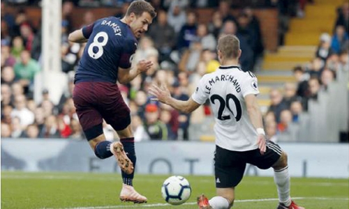 Arsenal swaggered to a ninth successive win as Alexandre Lacazette’s double and a goal of the season contender from Aaron Ramsey inspired a 5-1 rout of Fulham yesterday. Unai Emery’s side turned on the style on the banks of the River Thames, recording their biggest win of the season as the resurgent Gunners moved into the Premier League’s top four.