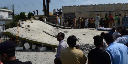 Officials said there were up to 40 people in the compound when the suicide attack took place, causing the entire roof slab to fall in one piece - complicating rescue efforts. A specially-trained team of army rescuers with modern equipment was working with civilian rescuers to lift and cut sections of the fallen roof to reach the victims. A police spokeswoman said two police officers were also among the dead in the attack, 70 kilometres (43 miles) northwest of Islamabad.