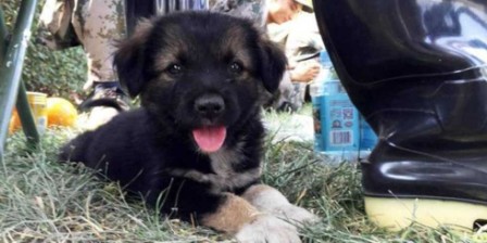 Another user shared the puppy's story on his micro-blogging account and said: "This is Shenghua [which translates to 'Biochemistry' in Chinese] - he was rescued by a chemical specialist team in Tianjin. The puppy wouldn't even leave its rescuers, such loyalty."