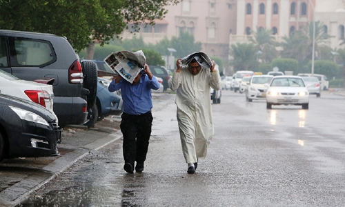 Life in the desert emirate came to a standstill in the past two days because of heavy rains, estimated by the national meteorological department at 96 mm (3.78 inches) -- almost equal to the country’s average annual rainfall. The deluge has flooded bridges and main roads and damaged buildings in residential areas. A stateless man drowned on Saturday as he tried to rescue his family from their flooded home in Kuwait.