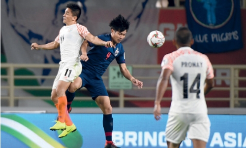 Celtic’s Tom Rogic scooped an inviting shot over and Awer Mabil hit the post, before Jordan’s Amer Shafi pulled off a superb double stop in the final action of the game. In Abu Dhabi, veteran striker Sunil Chhetri scored twice as India unexpectedly thumped Thailand to make a rip-roaring start to their campaign. Chhetri smashed home from the penalty spot after 27 minutes before Thai captain Teerasil Dangda’s header from a Theerathon Bunmathan free kick made it 1-1.