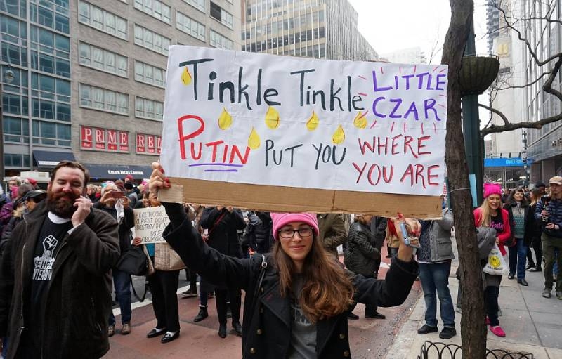 In Washington, demonstrators arriving by car, bus or subway converged on the city’s Freedom Plaza as they prepared to march defiantly past the nearby Trump International Hotel on Pennsylvania Avenue. “We need to stand up for women all over the world -- for races, gender, sexual orientation which are often misunderstood,” said Ann Caroline, 27, herself wearing a pink hat. Some marchers carried signs portraying Trump as a Russian “puppet.”