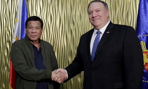US Secretary of State Mike Pompeo yesterday vowed to defend the Philippines against “armed attack” in the disputed South China Sea in Washington’s starkest warning yet against Chinese claims to most of the strategic waterway. Speaking in Manila after meeting with Philippine President Rodrigo Duterte, Pompeo said Beijing’s artificial islands in waters also claimed by the Southeast Asian nation and other neighbours was a threat.