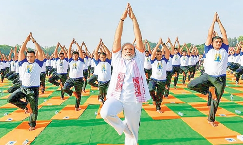“In a world where ideologies of hate can potentially divide brother from brother, Yoga stands as a unif y i n g force,” Modi wrote. “In a time where health ailments, especially stress-related ailments are rising, Yoga is giving relief and joy.” The theme of this yoga day, the fifth, is “climate action” and Modi said yoga can “foster oneness... with all the flora and fauna with whom we share our beautiful planet”. In recent days Modi, 68, fresh from a landslide election victory, has also posted videos to social media featuring an animated version of himself performing different yoga postures.