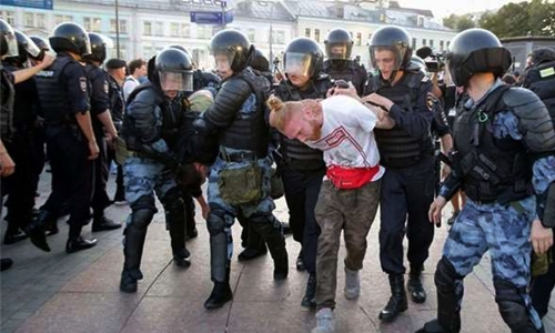 Russian police arrested nearly 1,400 people as they gathered in Moscow at the weekend to demand free and fair elections, a monitor said yesterday, the biggest such crackdown in years. About 3,500 people took part in the unauthorised protest on Saturday according to official figures, after authorities blocked prominent opposition candidates from taking part in municipal elections.