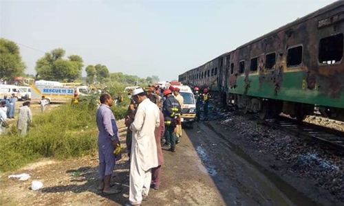 At least 74 people died, some after jumping through windows on the still-moving train to escape the blaze. Local media reported that rescue officials found bodies and some injured people along a two-kilometre stretch of track. Dozens more were wounded and rushed to nearby hospitals. One of the carriages -- Wagon No.12 -- was carrying mainly people from Mirpurkhas, the town’s deputy commissioner, Attaullah Shah, said.