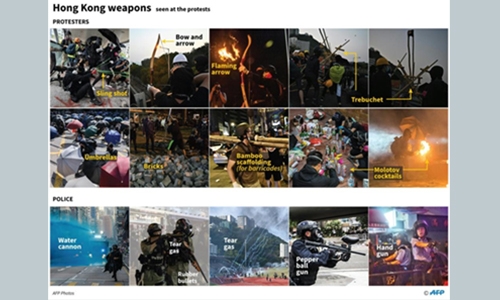 Police said the Chinese University, in the New Territories, had become a “weapons factory and an arsenal” with bows and arrows and catapults. “Their acts are another step closer to terrorism,” Chief Superintendent (Public Relations) Tse Chun-chung told a briefing, referring to protests on all campuses.