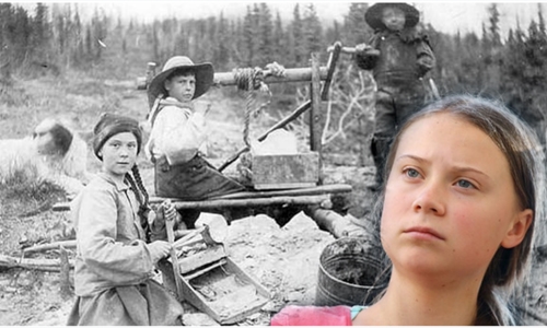 A 121-year-old photograph has inspired a joke theory that Greta Thunberg is a time traveller on a mission to save the planet. The picture shows three children working at a mine during the Klondike Gold Rush in the Yukon Territory, Canada, in around 1898. One of them, a girl with braided hair and a hat, is said to bear a resemblance to the 16-yearold climate change activist. “I’m not one for conspiracy theories but Greta is 100 per cent a time traveller,” commented Twitter user Simon Binns.