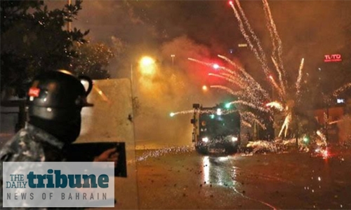 The protesters, supporters of the Hizbollah and Amal movements, set cars ablaze, and threw stones and fireworks at police, who used tear gas and water cannon to disperse them.