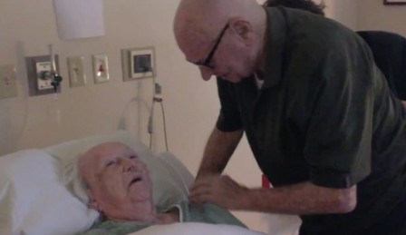 Laura, who has macular degeneration and can no longer see, heard Howard enter the room and asked if she could hold him as he sang to her.