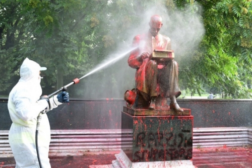 A statue in Milan of a famous Italian journalist has been sprayed red and tagged with the words “racist, rapist”, becoming the country’s first statue targeted since a wave of similar incidents across Europe and the United States. A city worker tried to spray clean the statue of Indro Montanelli, which stands in a garden of the same name in the northern Italian city, on Sunday morning after it was vandalised the night before.