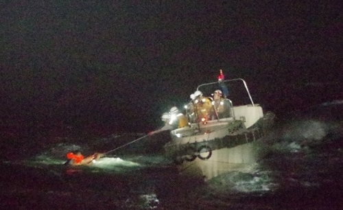Japanese rescuers were searching Thursday for a livestock ship with 42 crew members on board that a survivor said sank during rough weather a day earlier off a southern Japanese island, the coast guard said. The Filipino crew member was rescued late Wednesday after Japanese navy P-3C surveillance aircraft spotted him wearing a life vest and waving while bobbing in the water.