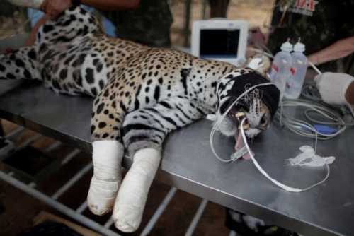 Jaguar burned by wildfires in Brazil is helped back to health