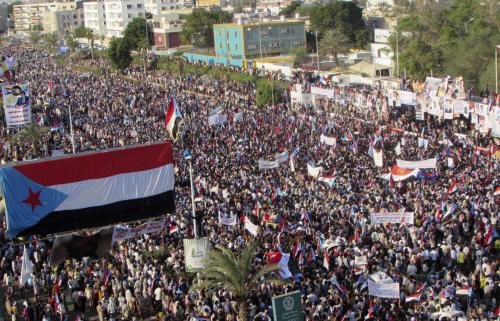 Marching to commemorate the anniversary of independence from Britain in 1967, protesters carried flags of the former South Yemen state, which was united with the north in 1990.