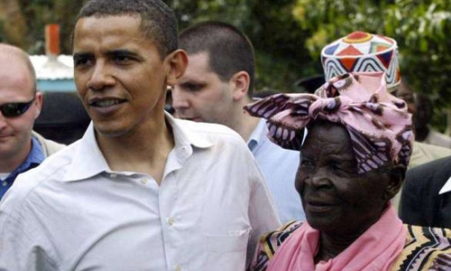 On his trip back to Kenya as US president, he met with her among other family members in Nairobi.