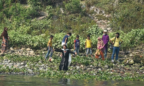 Relatives gathered at the river bank to search for their loved ones. Rescuers, including divers from the fire brigade, were searching for survivors on Monday while salvage operations were hampered by a storm last night.