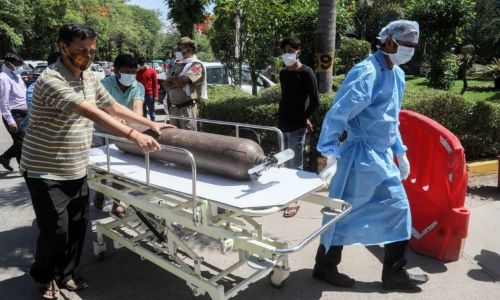 India registered 349,691 fresh coronavirus cases on Sunday, a new global record for infections on a single day, with the pandemic pushing the healthcare system to the brink and hospitals reporting deaths due to a shortage of medical oxygen.