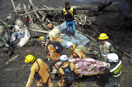 At least 40 people were injured in the landslide, which tore through the municipality of Salgar in the mountains of northwest Colombia after the Liboriana river burst its banks and sent a flood of mud rushing down a ravine.