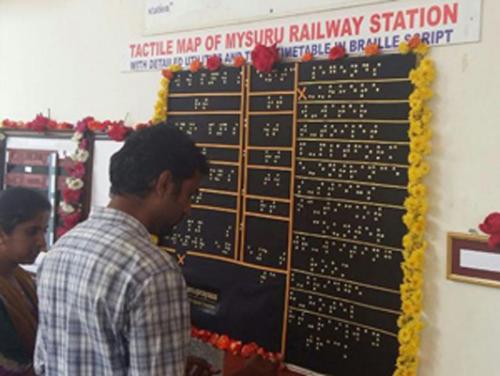 With a view to facilitating visually impaired train passengers, tactile maps of the railway station and train schedules in Braille were unveiled at the Mysuru railway station on Tuesday.