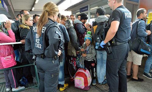 Caption: Refugees wait for a train at the rail station in Freilassing, southern Germany near the Austrian border.