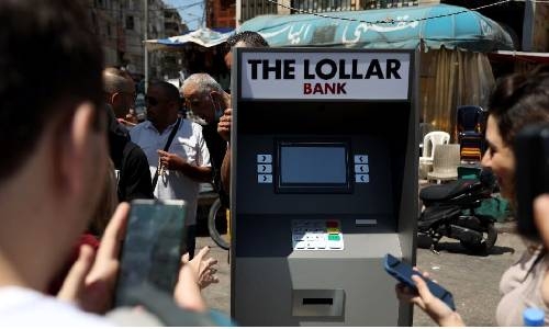 On one of Beirut’s main squares on Friday, organisers installed a fake ATM from which passers-by could withdraw “lollars”.