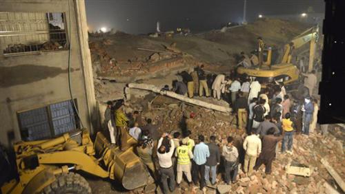 The collapse occurred at the four-storey Rajput Polyester polythene bag factory in the Sundar industrial estate, around 45 kilometres (30 miles) southwest of Lahore's city centre.