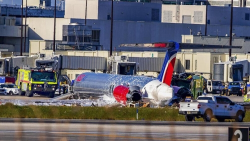 TV news images showed the plane appeared to have come to rest in grass beside a runway and that the aircraft and an area all around it were apparently doused with white firefighters’ chemicals. At least three firefighting vehicles were positioned nearby.