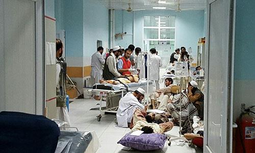 Caption: The injured being treated at a hospital in Kabul