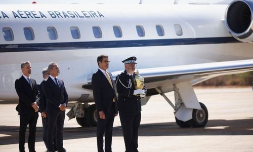 The Portuguese government agreed to loan the heart to Brazil for three weeks for the bicentennial celebration. The Brazilian air force flew it to Brasilia, where it was received on Monday by the country's defense minister.