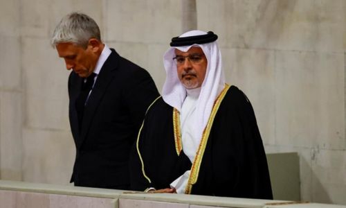 His Royal Highness Prince Salman bin Hamad Al Khalifa, the Crown Prince and Prime Minister of Bahrain, at Westminster Abbey.