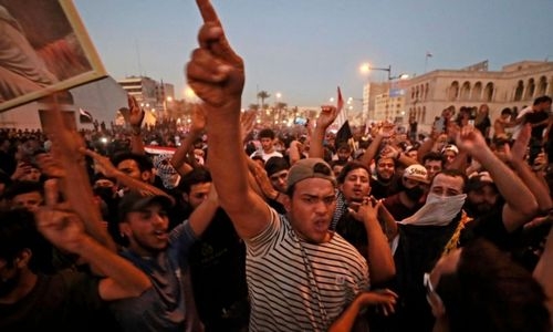 Protesters were heard chanting "the people demand the fall of the regime", as thousands demonstrated in Baghdad's iconic Tahrir Square, the epicentre of the protest movement, an AFP correspondent said.
