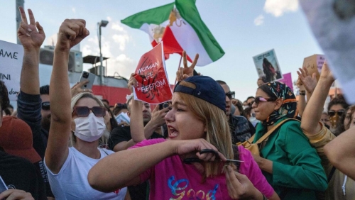 They chanted "Woman. Life. Freedom", the three words that have become the main slogan of the protests.