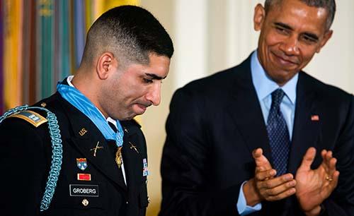 Obama awards 'hero' who tackled suicide bomber top military honour