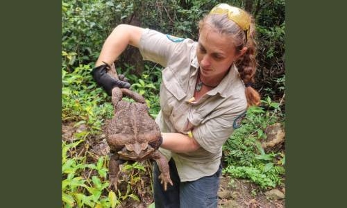 So their capacity to reproduce is quite staggering. And all parts of the cane toad’s breeding cycle are poisonous to Australian native species, so prevention is a big part of how we Cane toad dubbed “Toadzilla” need to manage them,” he said.