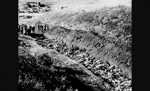 The remains, most of them believed to be sturdy men in their late 20s to early 40s, were buried densely in a trench 3 meters in width and 14 meters in length, the commission said.