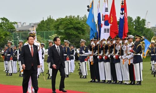 During their March summit, Kishida and Yoon agreed to end tit-for-tat trade curbs, with Kishida inviting the South Korean leader to a G7 meeting in Hiroshima this month.