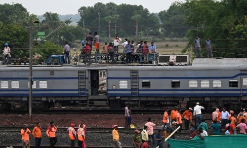 Trains rumbled past the debris of smashed carriages from Friday night's crash near Balasore in the eastern state of Odisha, where nearly 300 people were killed and hundreds injured.