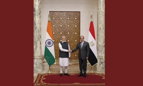 Modi held talks with President El-Sisi yesterday and discussed ways to further strengthen the strategic partnership between the two countries with a focus on improving trade and investments, energy ties and people-to-people connections.