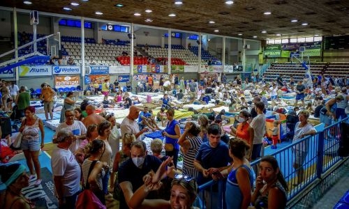 Tourists and some locals spent the night in gyms, schools and hotel conference centres on the island as firefighters battled the blaze.