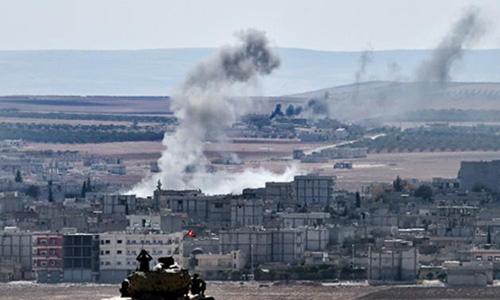 Caption: Turkish soldiers in a tank observe the Syrian town of Ain al-Arab, known as Kobane by the Kurds, from a hill at the Turkish-Syrian border, in the southeastern Turkish village of Mursitpinar, Sanliurfa province (Yahoo!)