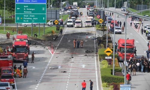 10 killed in light plane crash on street in Malaysia
