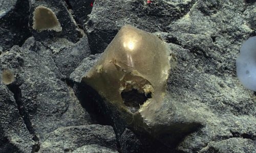 Ocean researchers using a remotely operated survey vehicle were amazed last week when they spotted the strange item on a rock about 3,300 meters (two miles) deep in the Gulf of Alaska. It is over 10 centimeters (4 inches) in diameter and had a small tear near its base.