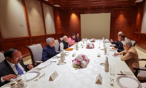Very different from the usual meat-heavy diplomatic fare, the all-vegetarian menu presented after Saturday's summit proceedings in New Delhi was rich in India's flavourful spices, with a main course of "jackfruit galette served with glazed forest mushrooms", accompanied by "little millet crisp and curry leaf tossed Kerala red rice".