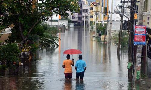 Caption: Two Indians make their way on a flooded street following heavy rain in Chennai last week (Yahoo!)