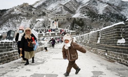 State news agency Xinhua, meanwhile, cited authorities in saying “some areas in northern China and regions along the Yellow River and Huaihe River might see their temperatures near or break record lows for the same period of the year”. Defying the already frosty weather, tourists in Beijing braved biting winds Friday at the portion of the Great Wall located in the mountains surrounding the city, where the iconic monument sat covered in a thin layer of snow.