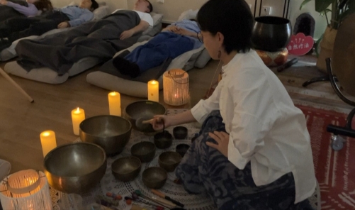 To the sounds of a gong, Ukrainian water drum, rainstick and handpans, Xuan and her fellow millennials enter a gentle slumber.