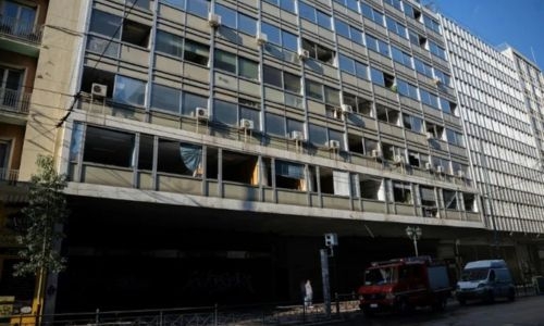 The area around the building was cordoned off by the police and the device exploded at 01:29 am (2329 GMT). Public broadcaster ERT said the device had been placed in a bag left outside the gates of a bank near the ministry.