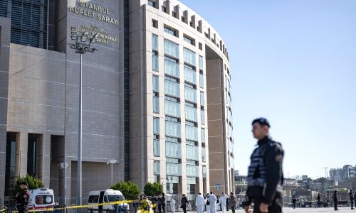Images from the scene showed two bodies lying on the ground outside the main entrance of the Caglayan courthouse, which has been used for some of Turkey's biggest trials.