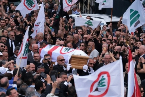Thousands of Lebanese yesterday mourned a slain Christian political official authorities said was killed by a Syrian gang, with supporters pointing the finger at Lebanon’s powerful Hezbollah group.